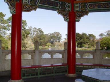 At one end of the lake, there is a Chinese pavilion that was donated to the City of San Francisco by its sister city, Taipai. Inside the pavilion there are benches where you can sit and watch the people on the lake.